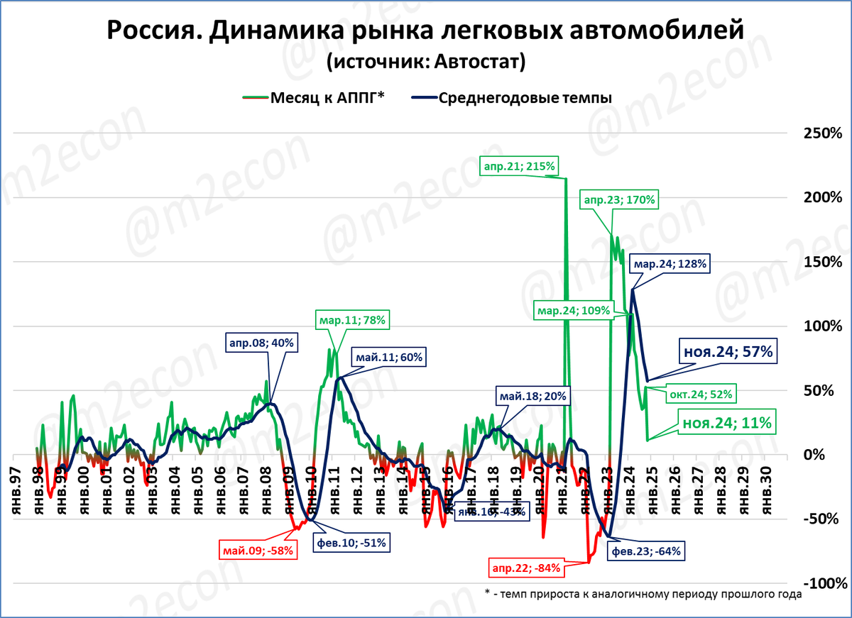 По сравнению с октябрем (-13%) падение ускорилось. Рынок падает девятый месяц подряд.