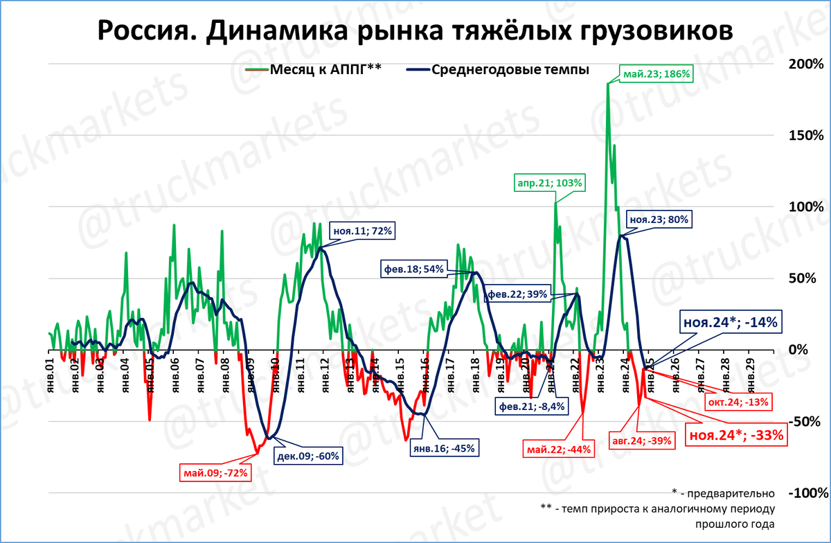 Напомним, что это наша предварительная оценка рынка тяжёлых грузовиков в ноябре.