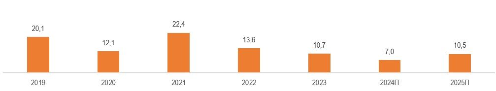 Энергопотребление в РФ продолжает расти сравнительно высокими темпами. По данным «Системного оператора», потребление электричества в январе — ноябре 2024 г. увеличилось на 3,4% по сравнению с аналогичным периодом прошлого года. По оценкам Минэнерго, спрос на электроэнергию в осенне-зимний период (ОЗП) 2024–2025 гг. вырастет на 3,3% по сравнению с ОЗП 2023–2024 гг. Согласно прогнозам «Системного оператора», в 2023–2030 гг. среднегодовой темп прироста энергопотребления составит 2,1%, тогда как в 2018–2022 гг. этот показатель составлял лишь 1,1%. Ускорение роста энергопотребления является позитивным фактором для бизнеса «Интер РАО» и будет способствовать увеличению объемов сбыта электроэнергии.