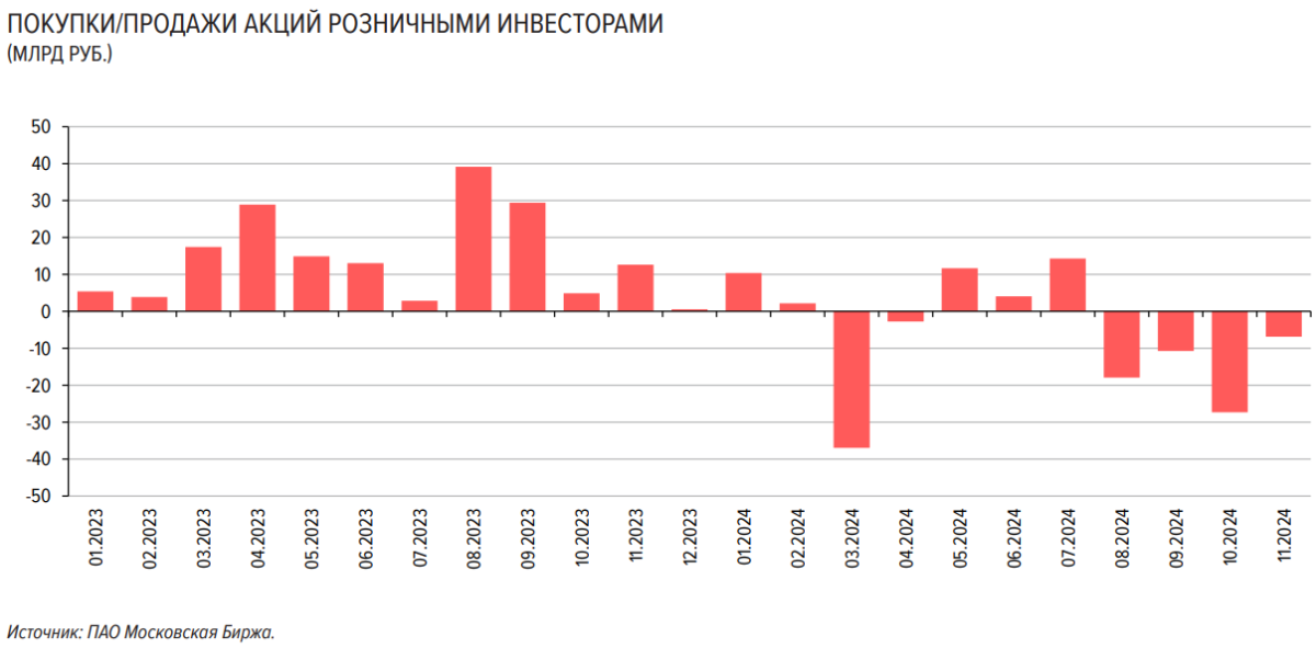 Частные инвесторы в ноябре 2024 года сократили нетто-продажи акций в четыре раза