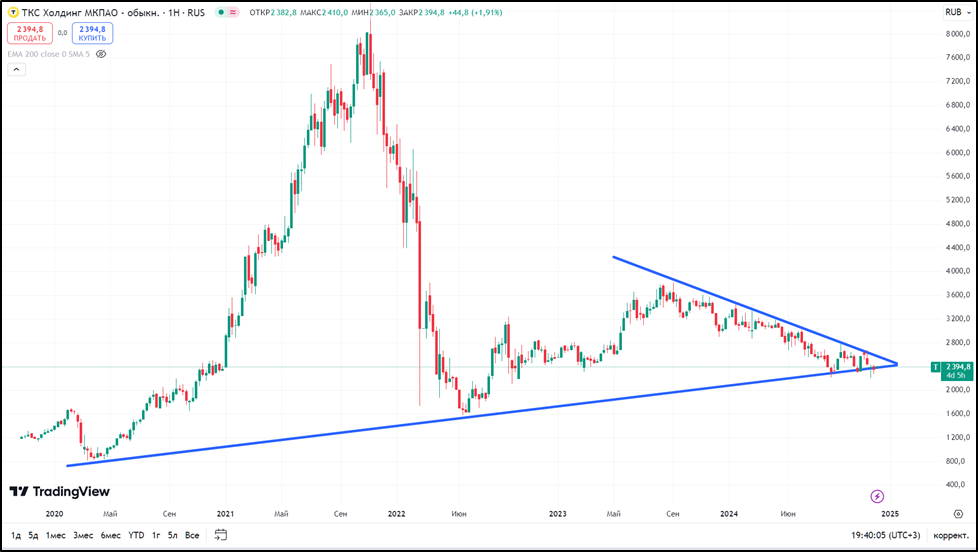 Сейчас Группа будет продолжает интеграцию с Росбанком, которая должна завершится в начале 2025 года. Компания стремиться извлекать операционные синергии и оптимизировать объединенный банковский бизнес. Но не факт, что Группа даже среднесрочно сможет сохранить прежние темпы роста, когда был только один Т-Банк.