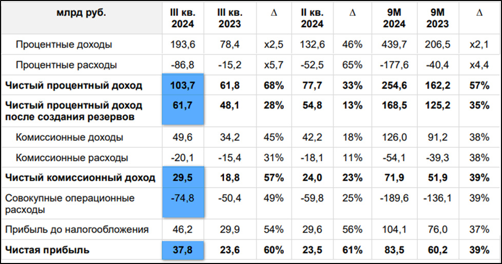 Операционные расходы в 3Q 2024 рекордные. Плюс расходы на создание резервов также максимальные с начала 2023 года. Но темпы роста ЧОД были выше, таким образом, компания отразила рекордную квартальную ЧП.