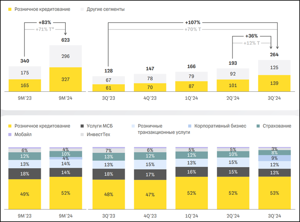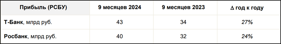 Еще стоит отметить, что оба банка внесли примерно равный вклад в прибыль по РСБУ за 9М 2024. И у обоих рост превысил 24% г/г.