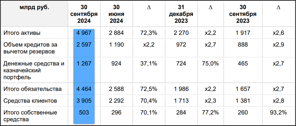 Суммарные активы 5 трлн (+72% г/г). Из них Кредитный портфель 2,5 трлн (+2х г/г).