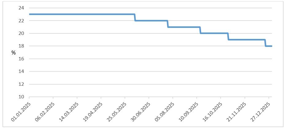 Мы ожидаем, что с учетом высоких инфляционных рисков траектория ключевой ставки в 2025 г. будет близка к середине «проинфляционного» сценария ЦБ (диапазон за год 20–23%). Тем не менее наш прогноз все же предполагает начало снижения ставки в середине следующего года. С нашей точки зрения, если не возникнут неожиданные факторы для более быстрого замедления инфляции, снижение ставки будет довольно плавным. Это поддержит доходность флоатеров на повышенном конкурентоспособном уровне.