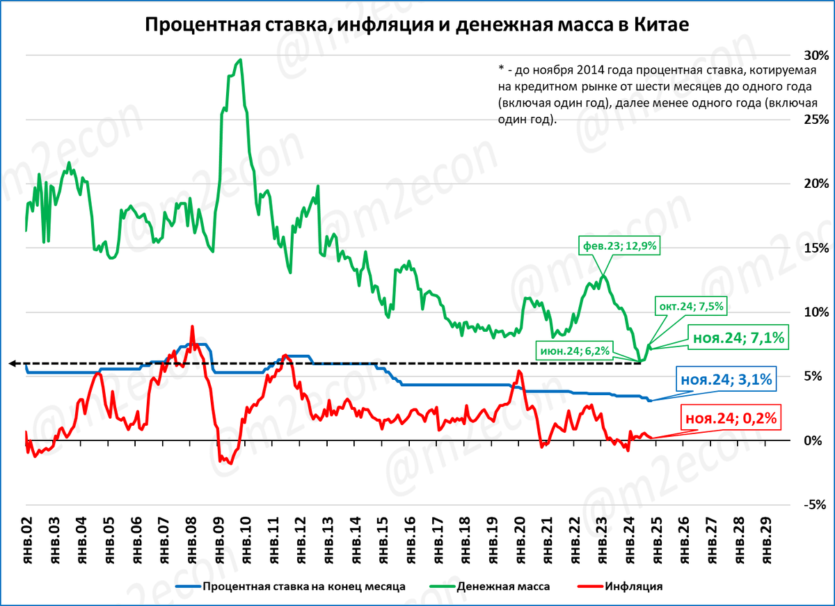 Это ниже, чем в октябре (7,5%). Среднегодовые темпы роста денежной массы снижаются на протяжении всего 2024 года.