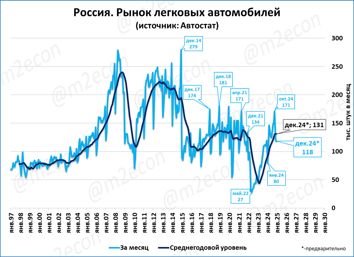 Продажи за 12 месяцев (скользящий год) по итогам декабря составят при таком прогнозе около 1,56 млн. штук.