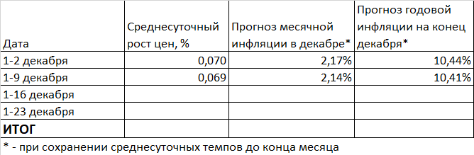 Среднесуточный рост цен с 1 по 9 декабря составил 0,069%.