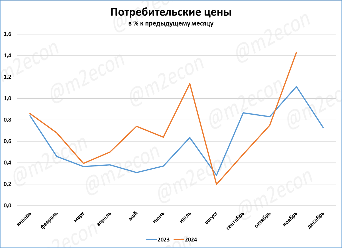 Рост цен за месяц три месяца (август-октябрь) были ниже, чем в аналогичном месяце прошлого года. Но в ноябре цены выросли сильнее, чем в ноябре прошлого года.