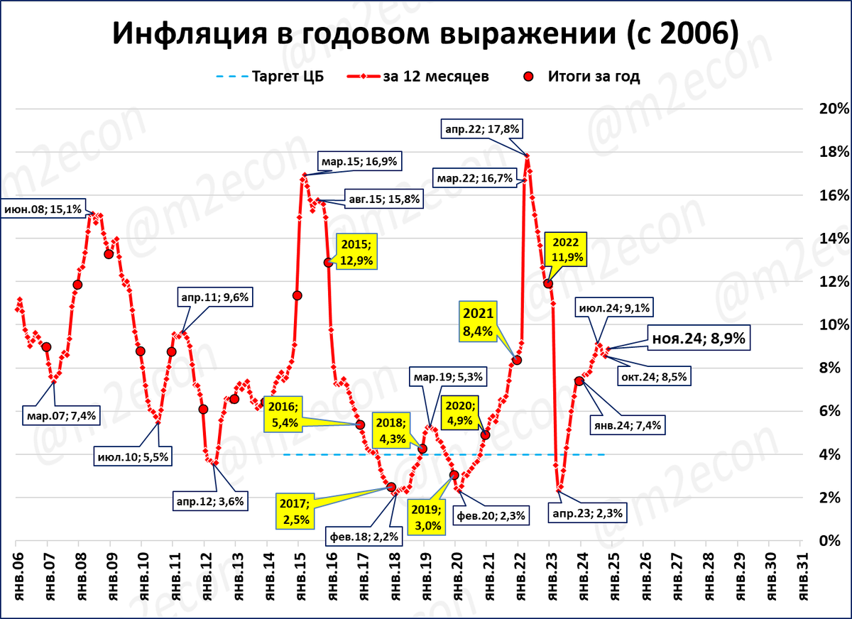Если такой темп сохранится до конца месяца, то по итогам года инфляция будет выше 10%. Точнее 10,4%.