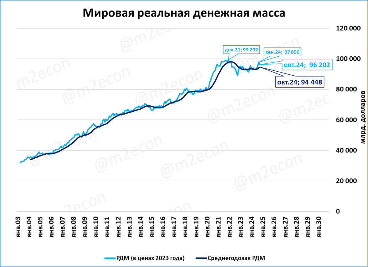 Зная инфляцию, мы можем посчитать мировую реальную денежную массу (РДМ).