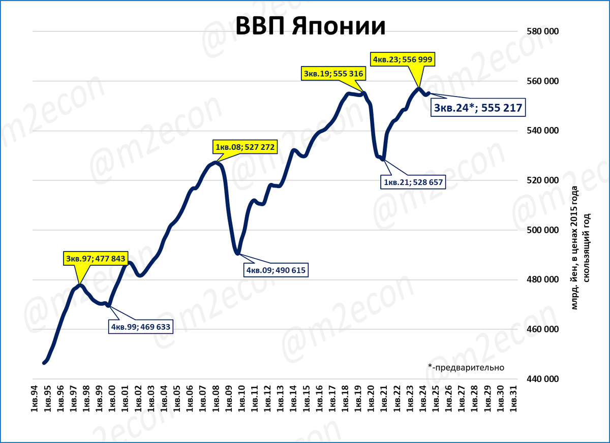 За последние 5 лет (с доковидного пика) ВВП Японии не вырос, а сократился на 0,1%.