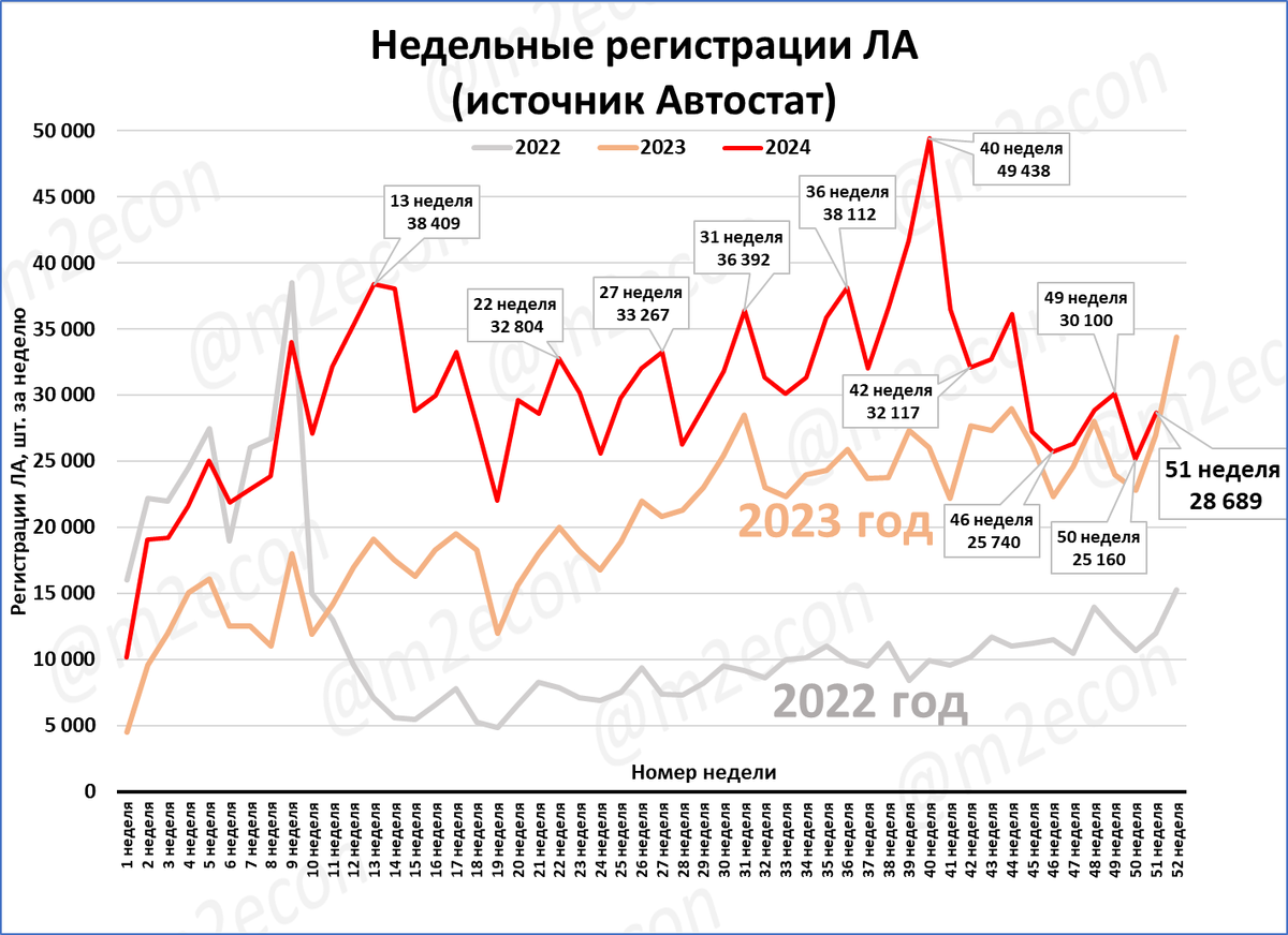 Такая низкая оценка декабря учитывает слабые предыдущие недели. Если учитывать только 51 неделю, то в декабре регистрации могут быть и выше, порядка 130 тысяч.).
