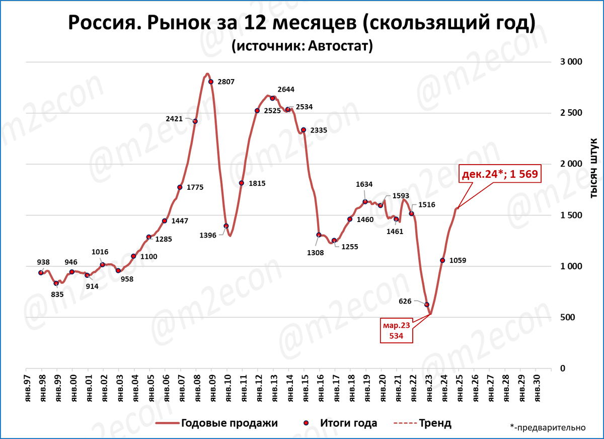 Продажи за 12 месяцев (скользящий год) по итогам декабря составят при таком прогнозе около 1,57 млн. штук.