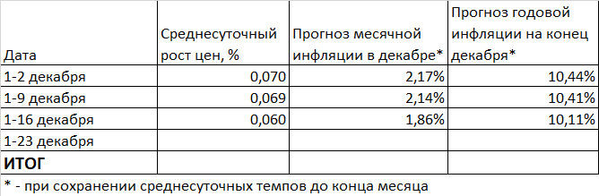 Если такой темп сохранится до конца месяца, то по итогам года инфляция будет выше 10%. Точнее 10,1%.