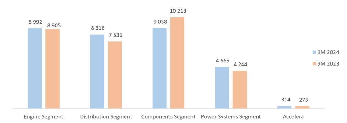 Engine Segment — производство двигателей объемом до 15 литров и сопутствующих запчастей для грузовиков, автобусов, внедорожников, а также для транспортных средств в различных отраслях промышленности, включая строительство, сельское хозяйство и выработку электроэнергии. Выручка в сегменте в 3К 2024 снизилась на 1% г/г, до $2,9 млрд, из-за слабого спроса в Северной Америке и на международных рынках.