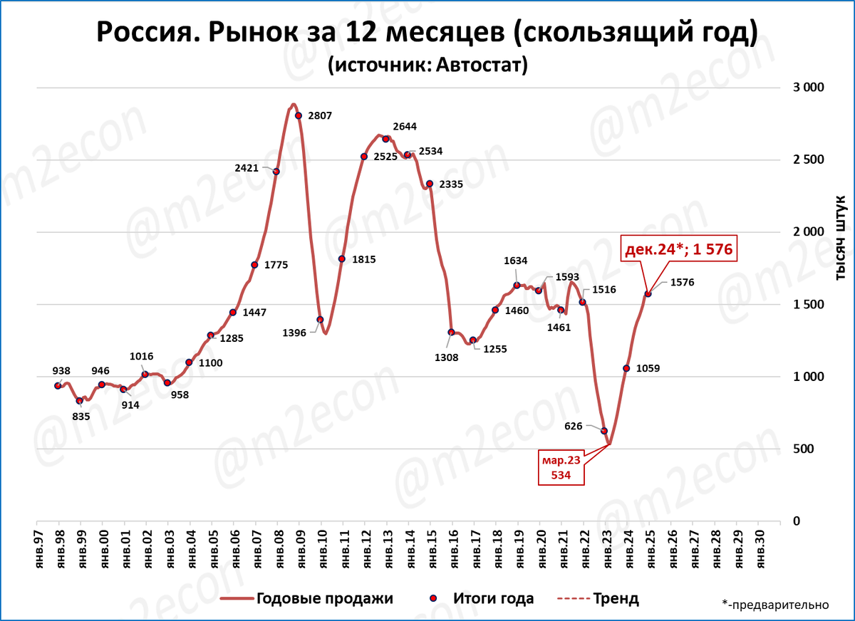 Продажи за 12 месяцев (скользящий год) по итогам декабря составят при таком прогнозе около 1,57 млн. штук.