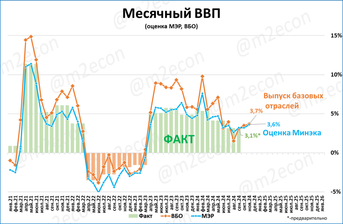 ВВП в ноябре вырос на 3,6% (Минэк) + ожидаемые итоги года