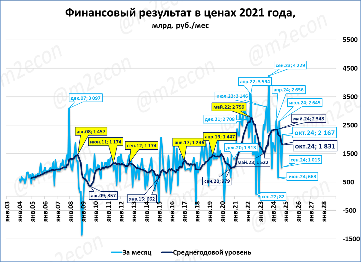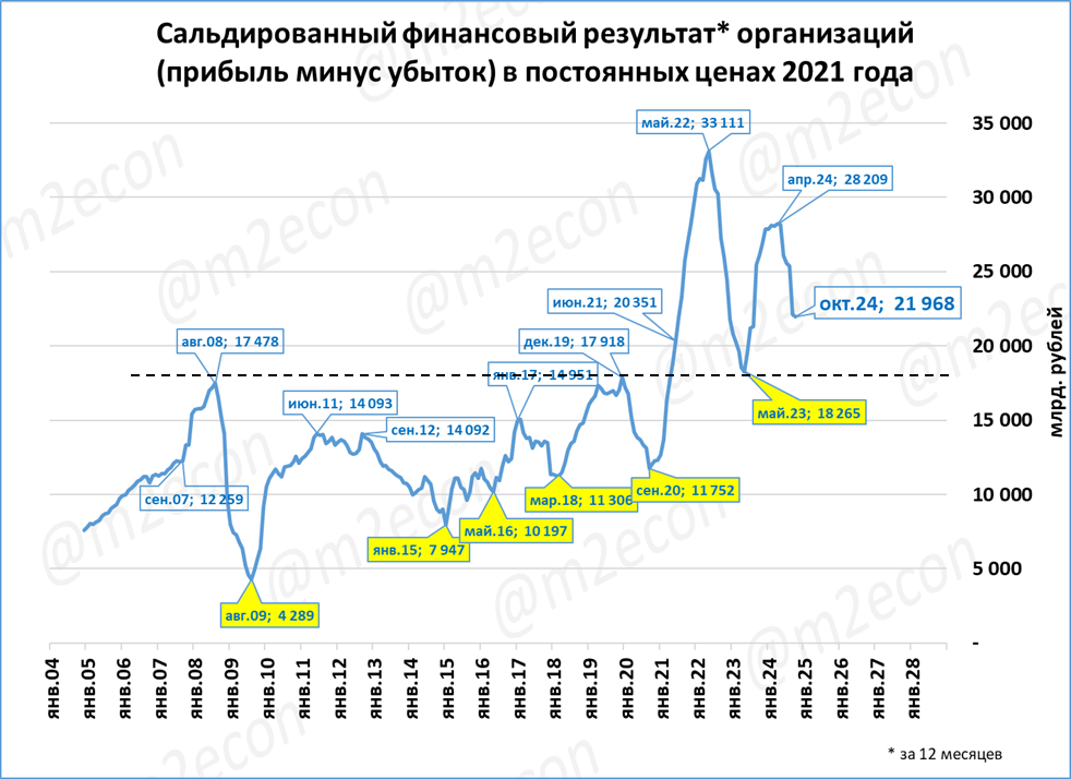 Можно сказать, что эта отметка многие десятилетия была своеобразным “потолком” для прибыли предприятий. Сейчас эта отметка стала “полом”, ниже которого прибыль не опускается уже три с половиной года.