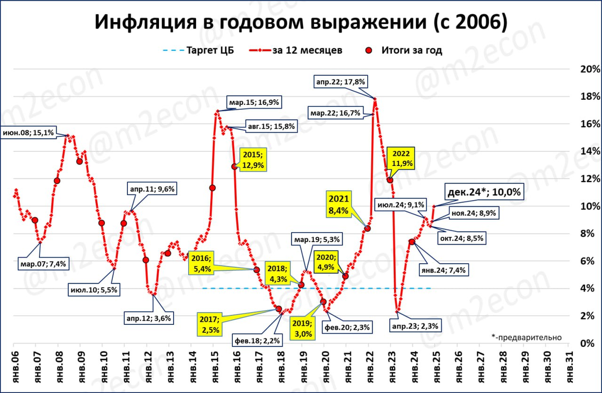 Если такой темп сохранится до конца месяца, то по итогам года инфляция составит 9,97%.