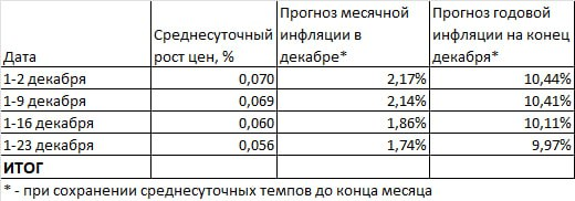 Среднесуточный рост цен с 1 по 23 декабря составил 0,056%.