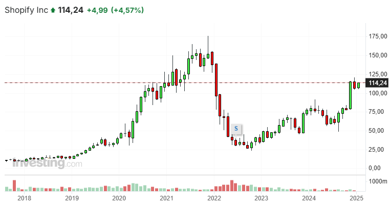Кроме того, в то время как состояние Nvidia связано с колеблющимися инвестициями в технологии, Shopify выигрывает от последовательного увеличения перехода потребителей к онлайн-покупкам. Её акции впечатляюще выросли, что отражает сильное доверие инвесторов и подчеркивает потенциал роста как мирового лидера e-commerce.