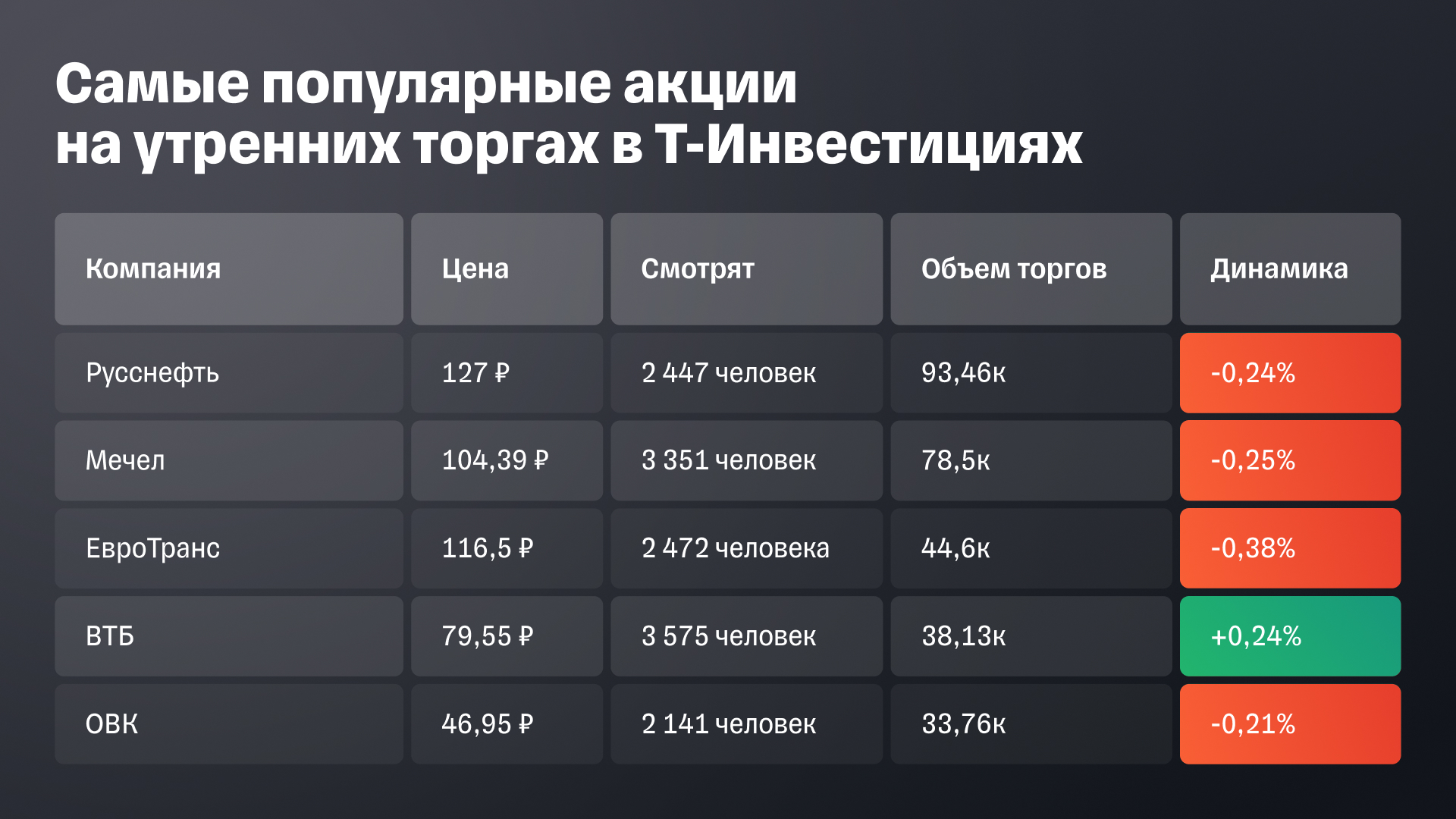 • ЕвроТранс: последний день для попадания в реестр акционеров, имеющих право на получение дивидендов за девять месяцев 2024 года (6,48 рубля на одну акцию). Дивидендная доходность — 5,5%.