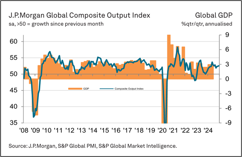 С 52,4 пунктов в ноябре индекс Global PMI Composite (сводный, объединяющий промышленность и услуги) вырос до 52,6 пунктов в декабре.