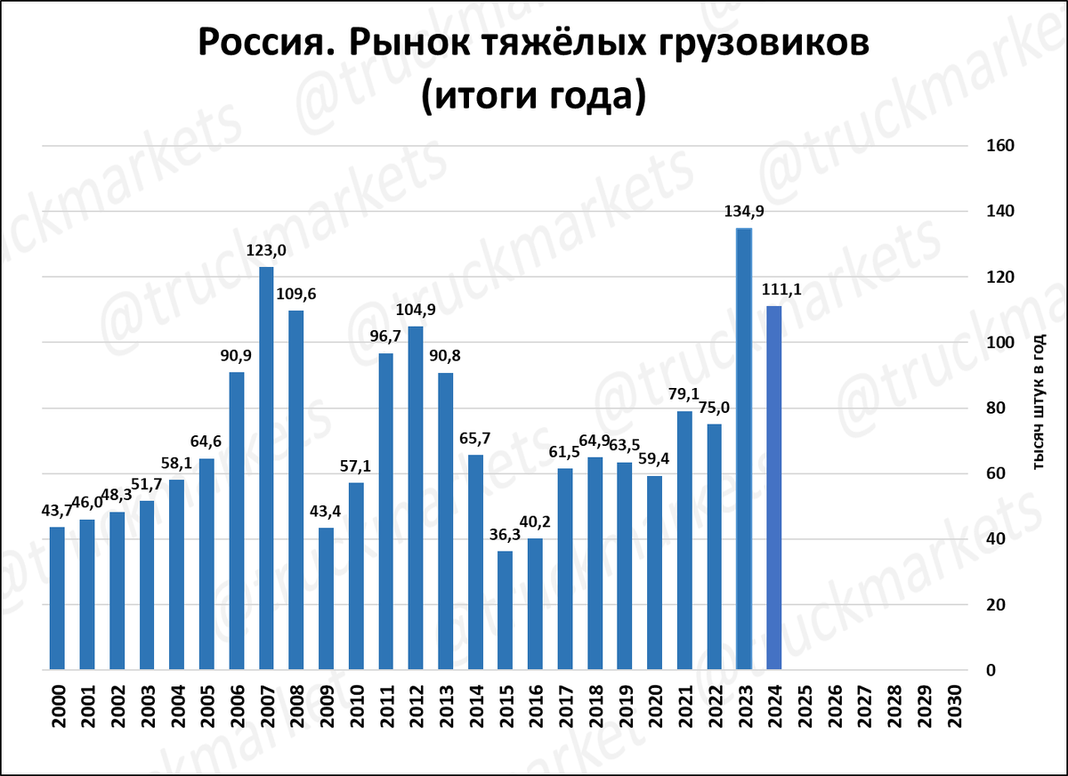 Год стал пятым за последние 25 лет, когда рынок был выше планки в 100 тыс. Рынок упал, но оставался одним из лучших в истории. Падение выглядит серьёзным только на фоне исторического рекорда 2023.