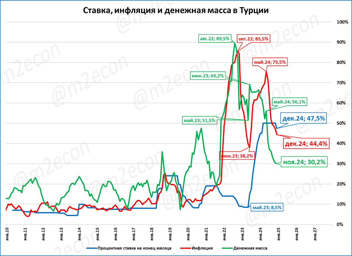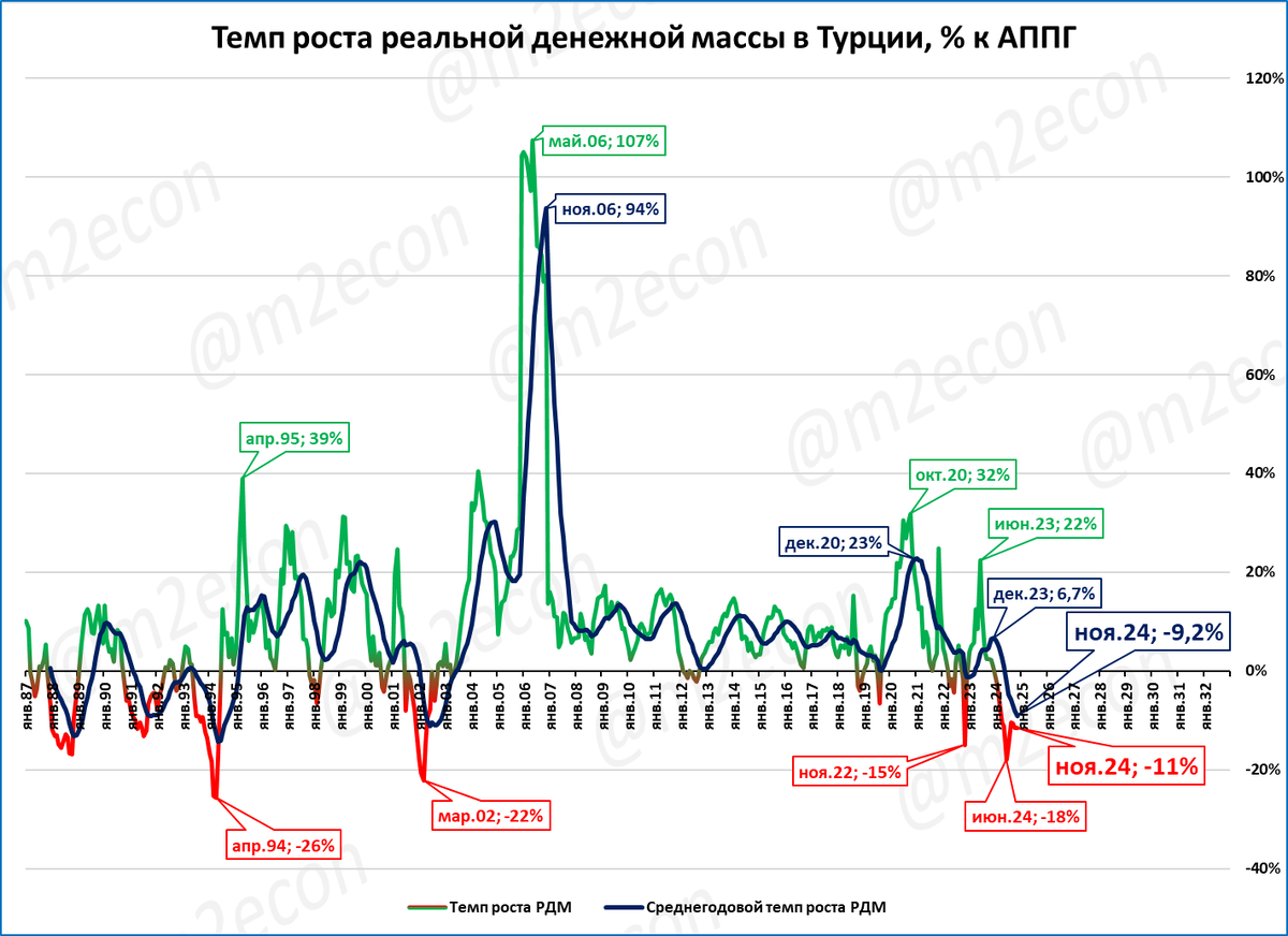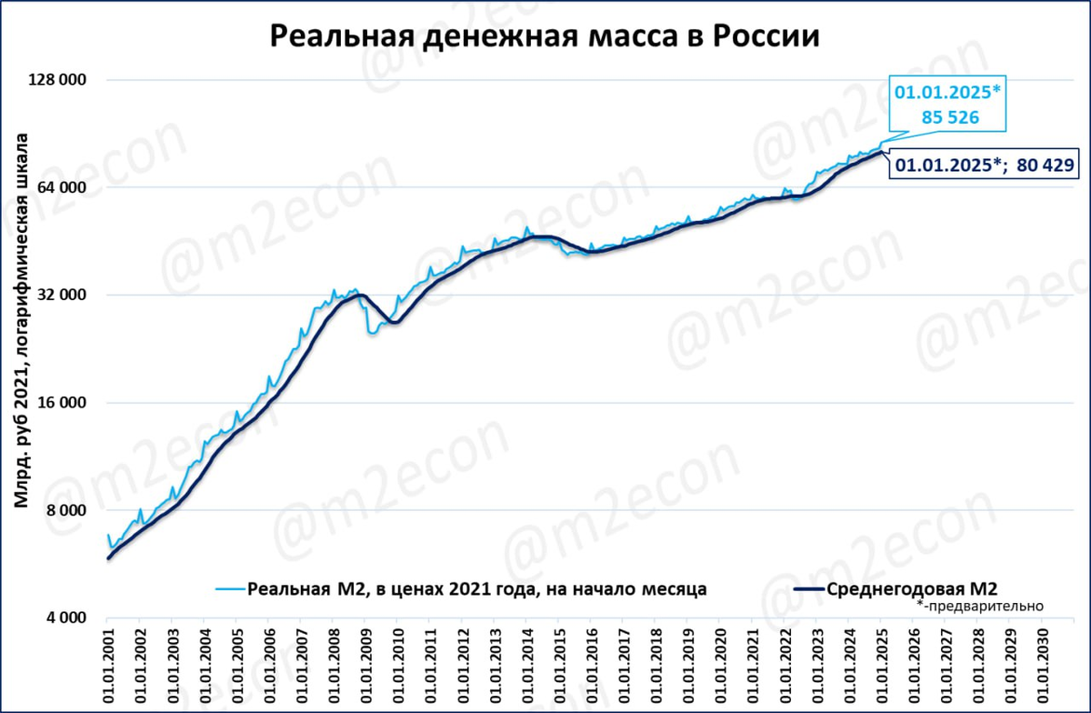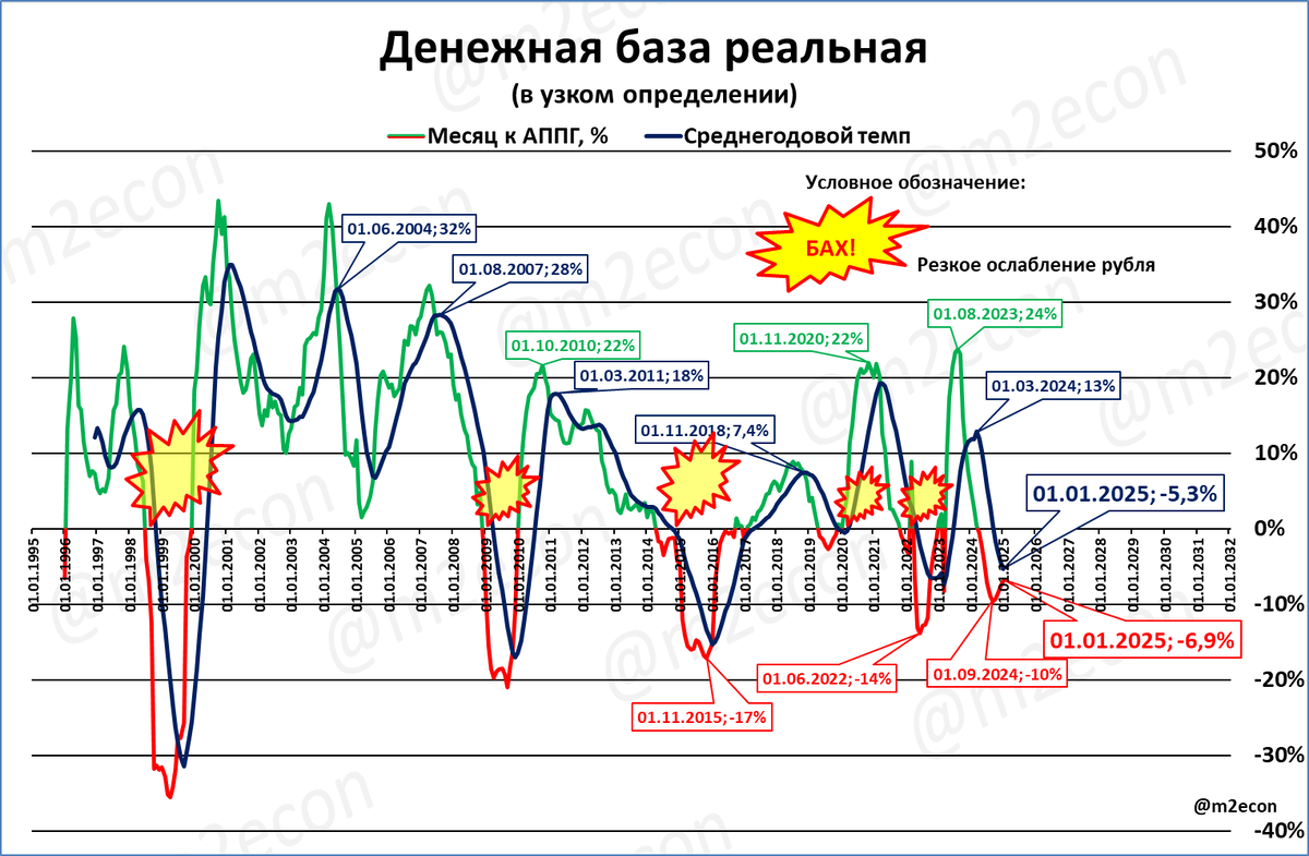 Конкретно на 1 января 2025 года реальная денежная база падает. Сейчас она на 3,7% ниже, чем год назад