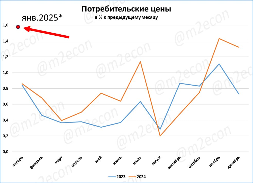Если такой темп сохранится до конца месяца, то в январе цены вырастут на 1,58%.