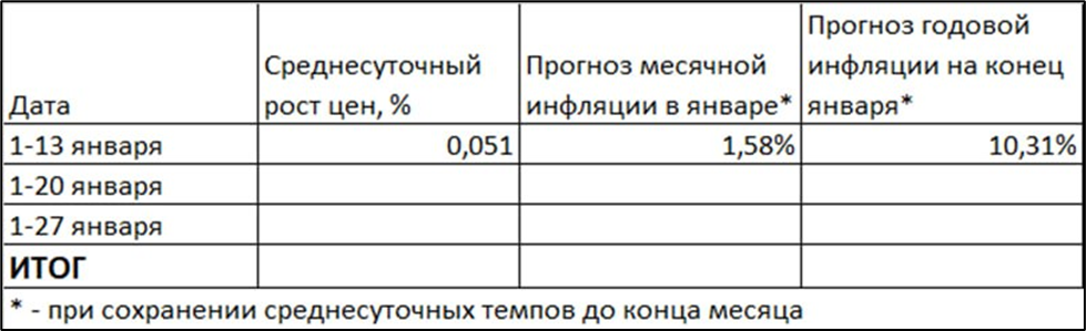 С 1 по 13 января среднесуточный рост цен составил 0,051%.