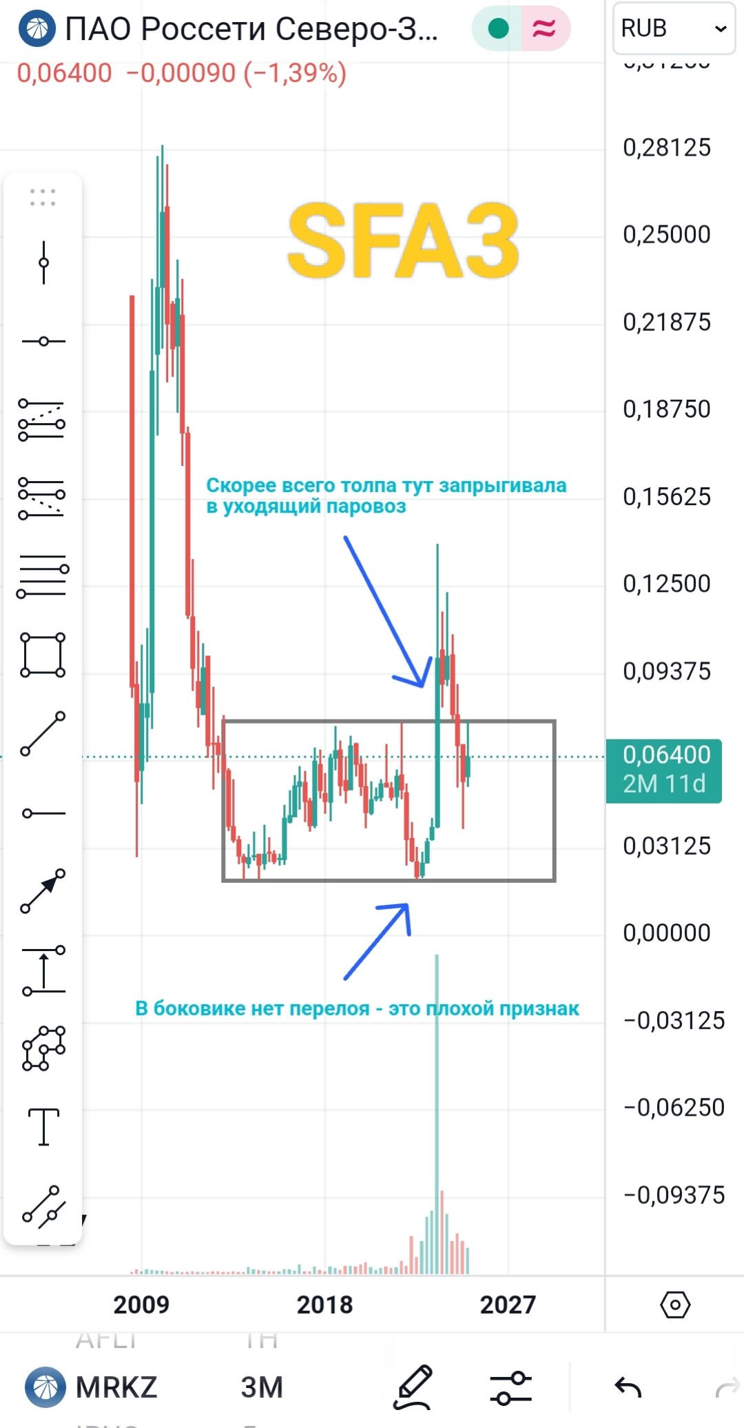 🤔 Это говорит нам о том, что о продажах надо пока забыть. Как минимум глобально пока рост. Но отмена проторговки прошла без подтверждения. Что это значит? Должен образоваться боковик, из которого цена выйдет вверх. Возможно он и будет сейчас формироваться. С одной стороны в долгосрок можно было бы и сейчас войти, но учитывая приведенные выше мои мысли, я бы пропустил эту бумагу, так как есть вероятность обновления исторического лоя.