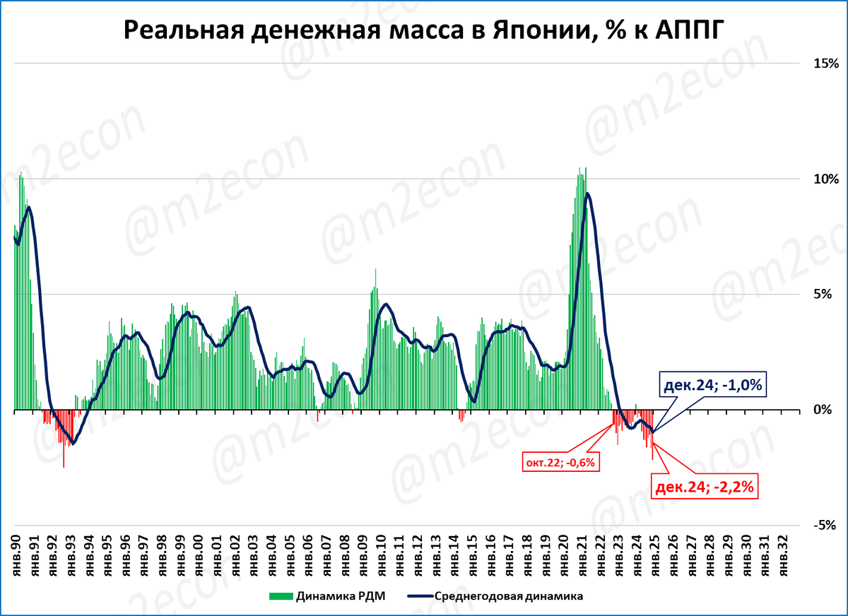 В декабре реальная денежная масса сжимается: -2,2%.