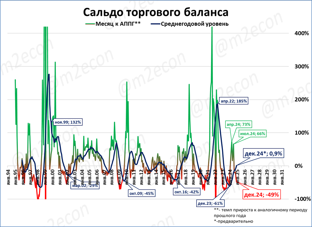 Экономика может расти не только при нынешнем (положительном!) уровне торгового баланса, но даже при отрицательном сальдо.