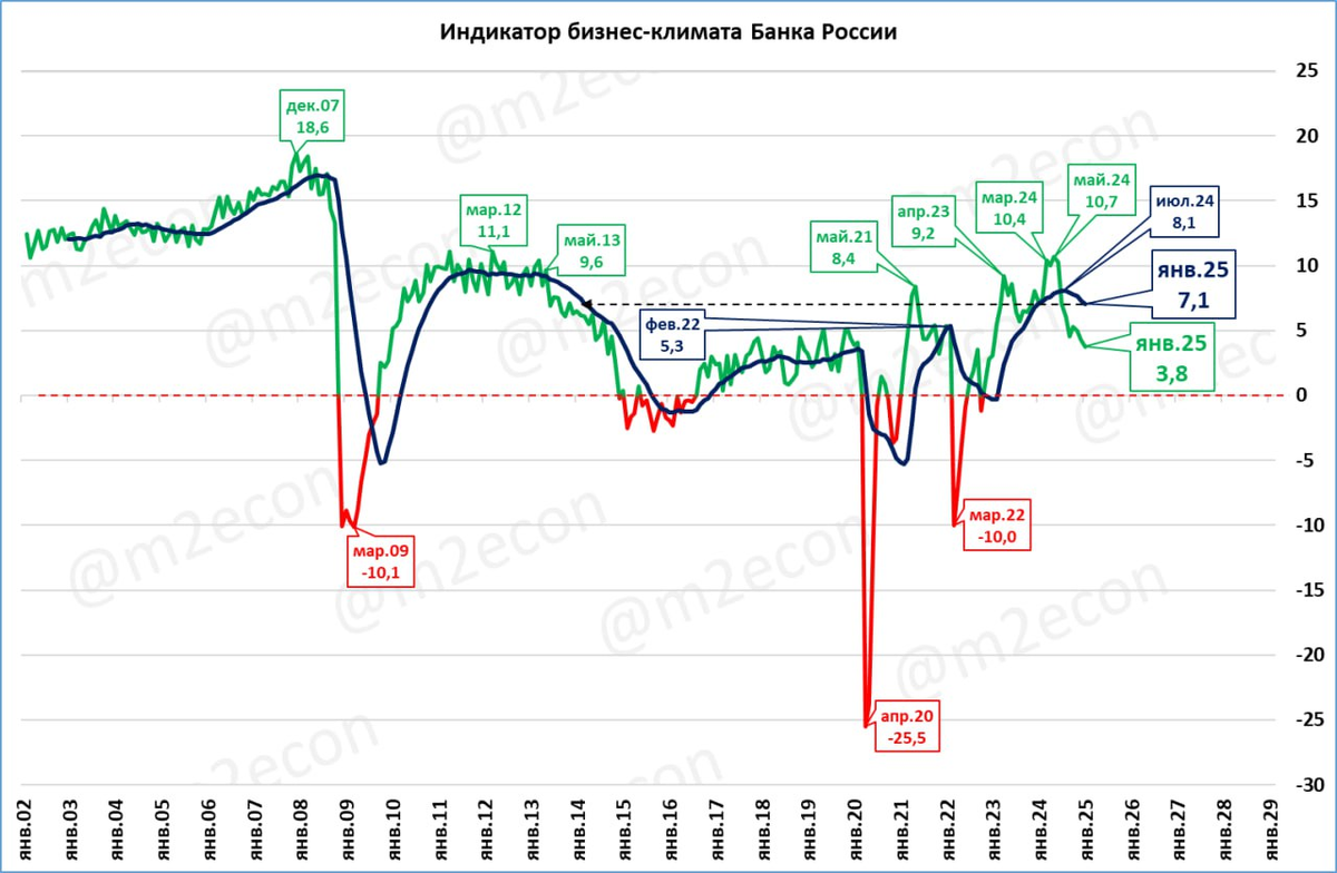 В январе индикатор бизнес-климата Банк России продолжает оставаться в положительной зоне.