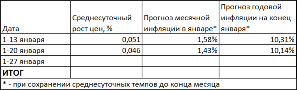 Если такой темп сохранится до конца месяца, то в январе цены вырастут на 1,43%.