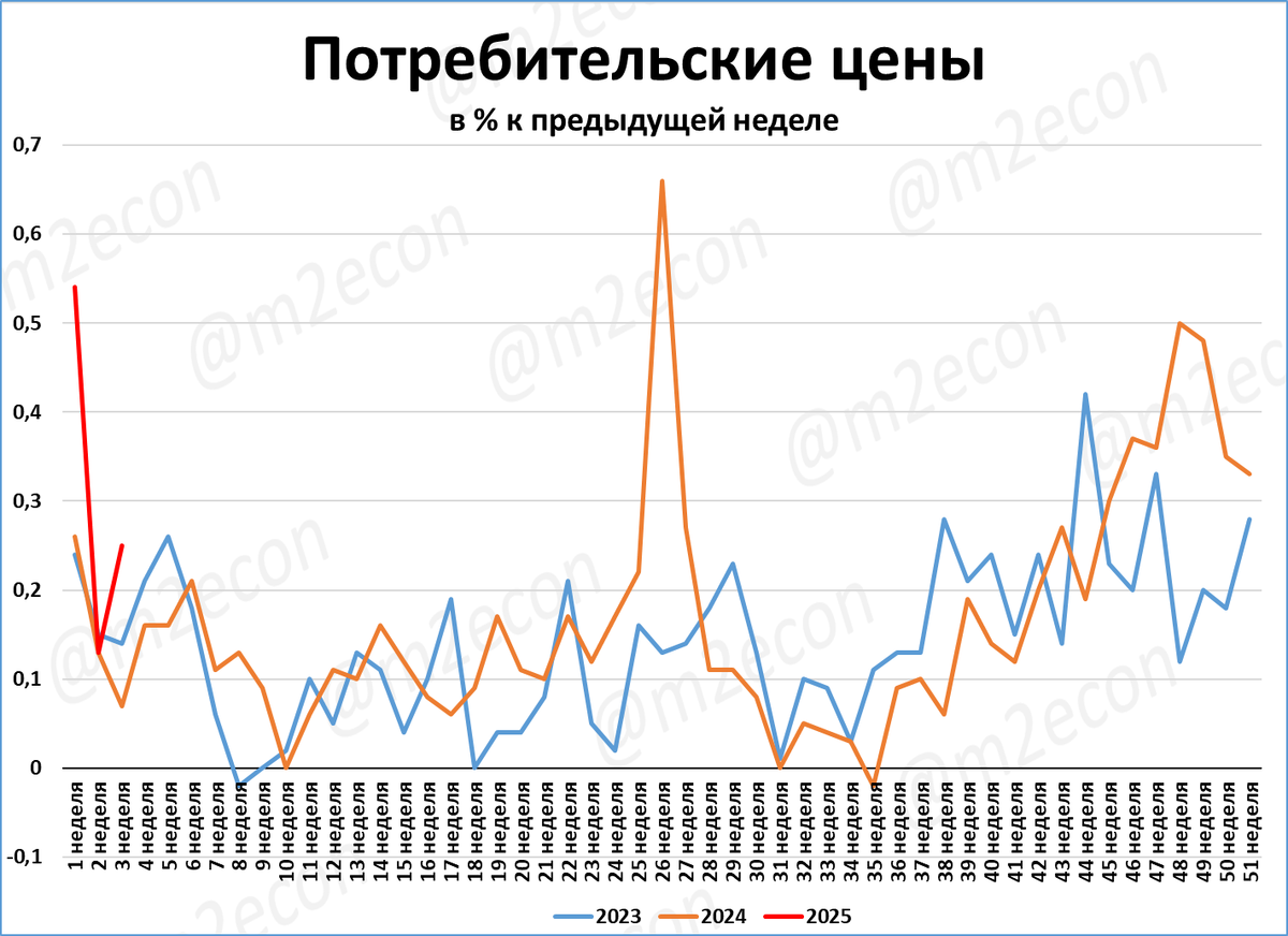 Рост цен за 3-ю неделю (красная линия, конец) выше, чем за аналогичную неделю прошлого года.