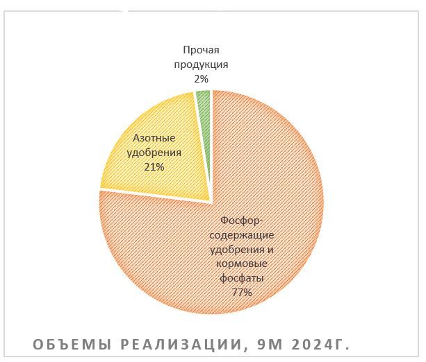 В 2024 г. «ФосАгро» продолжает наращивать объемы производства и реализации продукции. За 9М 2024 выпуск фосфорсодержащих удобрений и кормовых фосфатов увеличился г/г на 4,0%, выпуск азотных удобрений сократился на 2,9%. При этом общие продажи продукции в объемных показателях выросли на 4,1%.