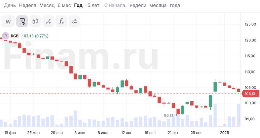 “С 24 декабря 2024 года индекс снизился на 4,7% (449 пунктов) до отметки 103,19 пунктов. Если смотреть на индекс полной доходности RGBI-tr, то текущий уровень в 591,95 пункта соответствует апрелю 2020 года. Государственные облигации, даже с учетом выплаченных купонов не смогли обогнать рост потребительских цен. Но депозитные ставки по данным регулятора начали снижаться, что должно способствовать притоку ликвидности на финансовые рынки. Сейчас стоит обратить внимание на короткие (до 1 года) бумаги с высокой фиксированной купонной доходностью. Стоит также уделить внимание структуре владения компании, так как в свете последних событий с “Домодедово” и “Борец” котировки бумаг сильно просели. Что касается флоатеров, то, на мой взгляд, они менее привлекательны, чем “фиксы”, выходящие на размещение в 2025 году”, - подытожил эксперт.