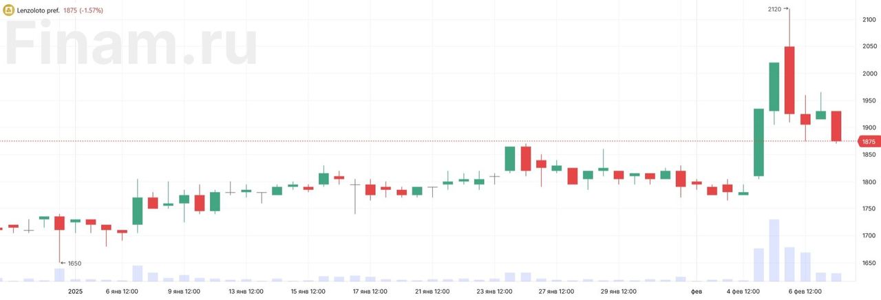 Что касается акций «Лензолота», они реже упоминаются в обзорах экспертов, однако внимание к нему привлекает искусственный интеллект. Умный сервис «Финам AI-скринер» прогнозирует рост обыкновенных акций компании через год на 48,16%, до 22002,3 рубля, а привилегированных – на 51,11%, до 2840,9 рубля. Эти акции отличает высокая волатильность: префы показывали резкие скачки в начале февраля и затем скорректировались, сейчас они находятся в районе 1880 рублей (примерно +9% к началу года).