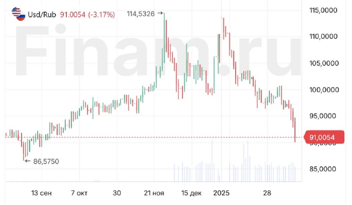 Аналитик «Финама» Александр Потавин полагает, что снижение курса доллара до отметки 90 рублей на волне эйфории по поводу завершения конфликта будет краткосрочным.