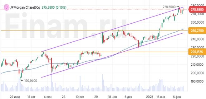 В том числе оценка целевой цены акций JPMorgan аналитиками Wells Fargo Securities составляет $300 (рейтинг «Выше рынка»), Evercore ISI — $273 («На уровне рынка»), Truist Securities — $268 («Держать»).
