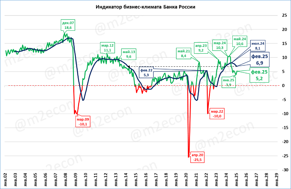 Говоря иначе, показания индикатора не противоречат нашему прогнозу роста ВВП в России на 3,5% в 2025 году.
