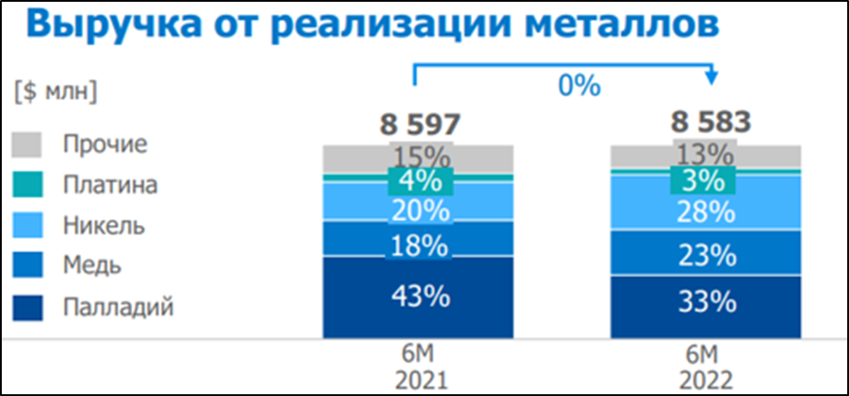 Кстати, по данным двухлетней давности на палладий приходилась треть выручки Норникеля. На медь и никель примерно по 25%. На платину около 3%. И на остальные металлы около 13% продаж.