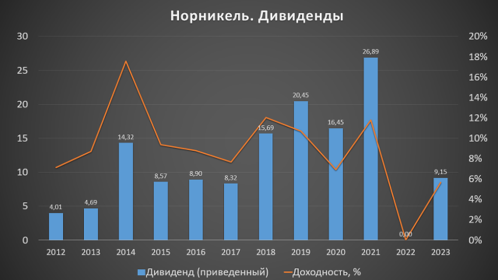 В 2022 году истекло соглашение между основными акционерами компании, по которому Норникель стремился выплачивать высокие дивиденды в размере 60% от EBITDA.