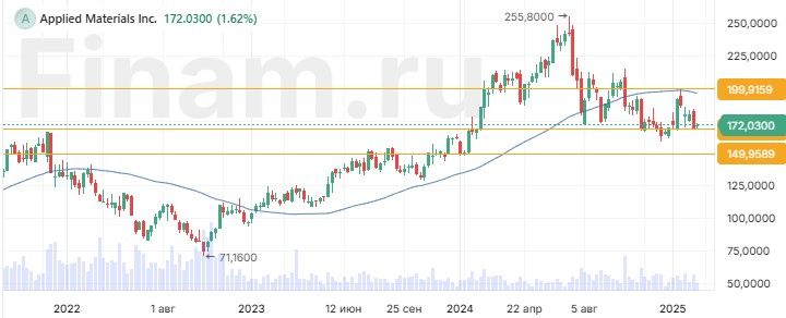 В том числе оценка целевой цены акций Applied Materials аналитиками Evercore ISI составляет $220 (рейтинг «Выше рынка»), Wells Fargo Securities — $205 («Выше рынка»), BNB Paribas Exane — $180 («Нейтрально»).