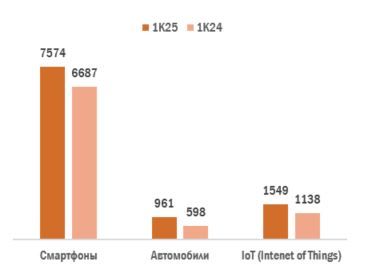 Субсидии в Китае. В рамках мер по стимулированию потребительского спроса китайские власти в январе 2025 года ввели субсидии на покупку новых смартфонов в размере 15%. Эти меры, вероятно, окажут благоприятное влияние на продажи смартфонов китайских производителей, таких как Xiaomi, vivo и OPPO, которые используют чипы Qualcomm во многих моделях своих устройств.