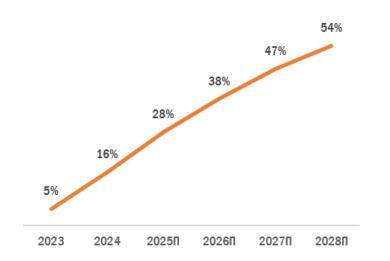 Историческая и прогнозная динамика доли ИИ-смартфонов в структуре отгрузок