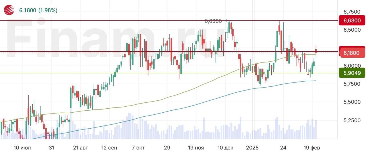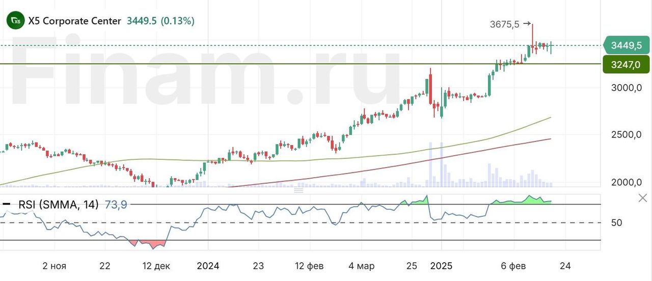«Корпоративный центр ИКС 5» (X5 Group) — фаворит в потребительском секторе благодаря сильным результатам и потенциально высоким дивидендам. Целевая цена — 3990 руб., потенциал роста составляет 15%. Выручка по итогам 2024 года выросла на 24,2% до 3,9 трлн руб. Торговая площадь за 2024 год увеличилась на 8,4% (г/г) до 11 млн кв. м. Сопоставимые продажи увеличились на 14,4%, чему способствовал рост трафика на 2,9% и рост среднего чека на 11,1%. Прогнозировать дивиденды X5 крайне трудно из-за того, что компания планирует обновить дивидендную политику и с 2021 года не распределяла прибыль. Мы ждем, что суммарные выплаты в 2025 году (с учетом дивидендов за прошлый период) могут превысить 600 руб. (доходность 17%). Помимо дивидендов, X5 может провести байбек и выкупить с дисконтом бумаги, оставшиеся в зарубежных юрисдикциях. В качестве рисков выделим высокие дивидендные ожидания, которые могут не оправдаться, рост расходов на персонал и аренду и ограниченный потенциал долгосрочного роста. Также с технической точки зрения бумаги выглядят значительно перекупленными.